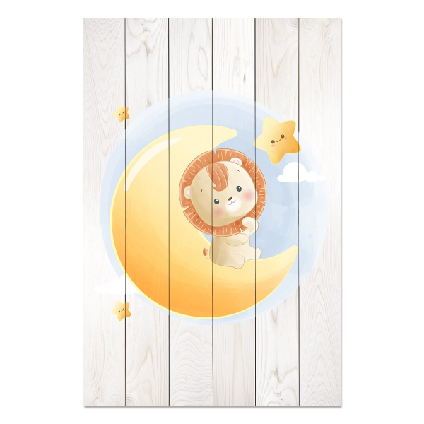Obrázek na dřevo Cute Little Lion Sitting on the Moon